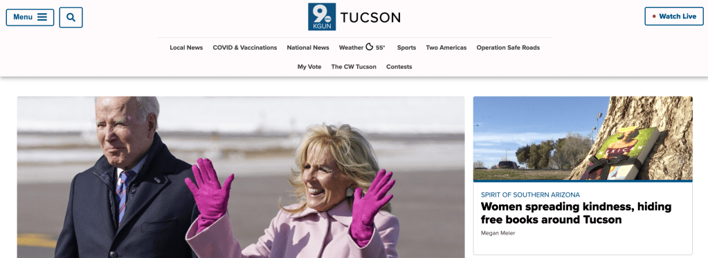 Anyway, please watch the story (it’s also posted on KGUN9’s Facebook, Instagram, and YouTube pages), and give it some love. Also, we’re tickled that this gnome also shared a web presence (albeit briefly) with news about the First Lady’s visit to Tucson 🙂