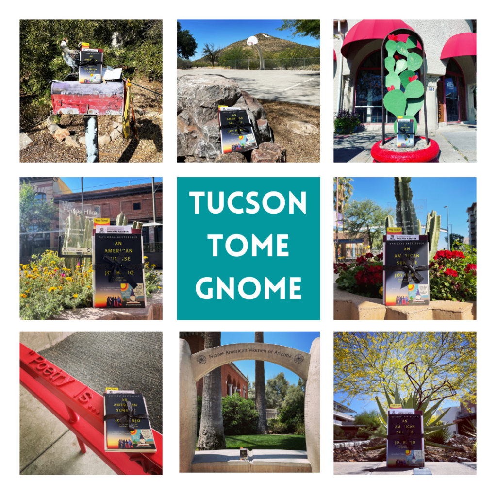 Wowza! During this eighth Tome Giveaway, I had a great day traversing the city AND visiting Downtown Tucons’s Haiku Hike. This month also represented this Gnome’s first collaboration! I partnered with the UA Poetry Center to hide 30 book bundles featuring Poets Laureate – 90 books total! You can read more about the authors and their books here.