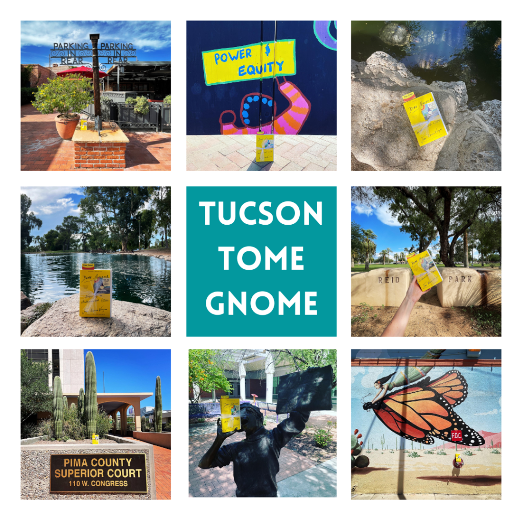 Wowza! During this twelfth Tome Giveaway, I had a wonderful day hiding books all over Tucson. Over the course of the day, I hid 30 copies of Dear America: Notes of an Undocumented Citizen by Jose Antonio Vargas. Some photos from my adventures last weekend are included in the collage above.
