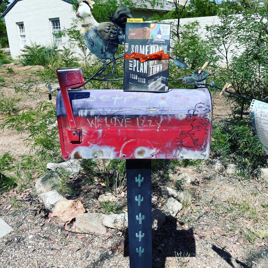 Wowza! Happy National Poetry Month! During this twentieth Tome Giveaway, I had a wonderful day hiding tomes all over Tucson. I hid 30 copies of Someday the Plan of a Town by Todd Boss throughout the day – including 10 copies along downtown Tucson’s Haiku Hike! We also had a guest tome gnome for part of our hiding adventure! This gnome would like to send a huge thanks to Tyler Meier, Executive Director at the UA Poetry Center, for sponsoring this month’s tome-hiding AND joining us to hide books along the Haiku Hike. We had a blast!