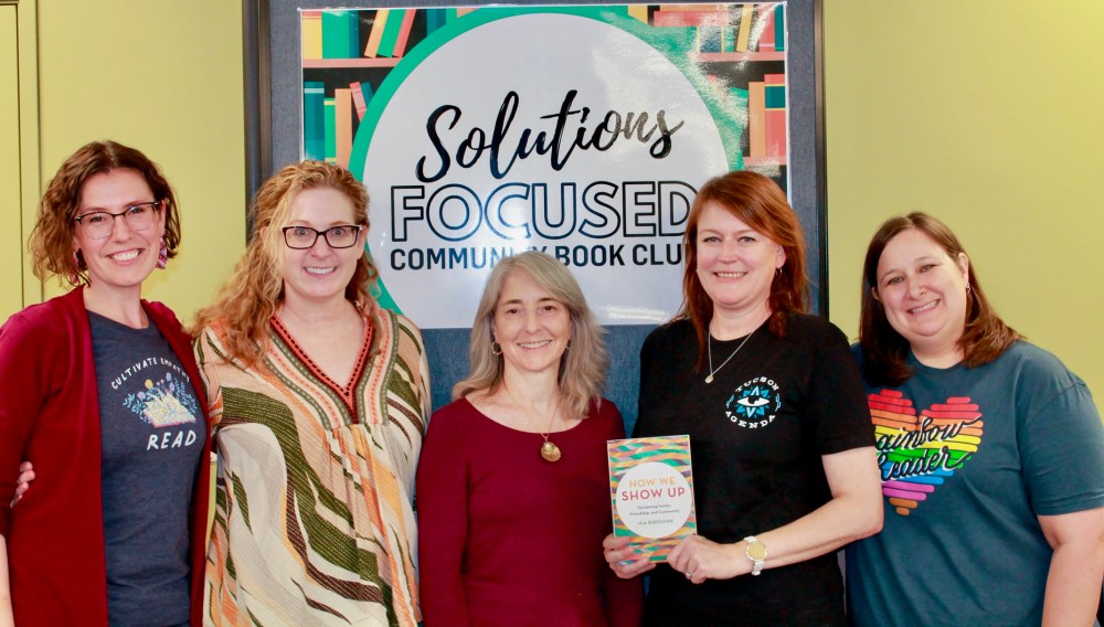 Hi folks! Emily here. It’s another lovely Saturday in Tucson. I’m sitting at my desk reflecting on the beautiful energy and thoughtful conversations we participated in last week during our third Solutions-Focused Community Book Club. It perhaps goes without saying, but if you joined us for book club last Wednesday, then you know it was a fabulously fun night filled with great conversation, amazing snacks and drinks, and a lot of book-sharing, including a raffle of our next selection (look at the happy winners, below!). I also REALLY LOVE running the raffle, LOL. Thank you to Social Venture Partners for sponsoring the book raffle this month ❤