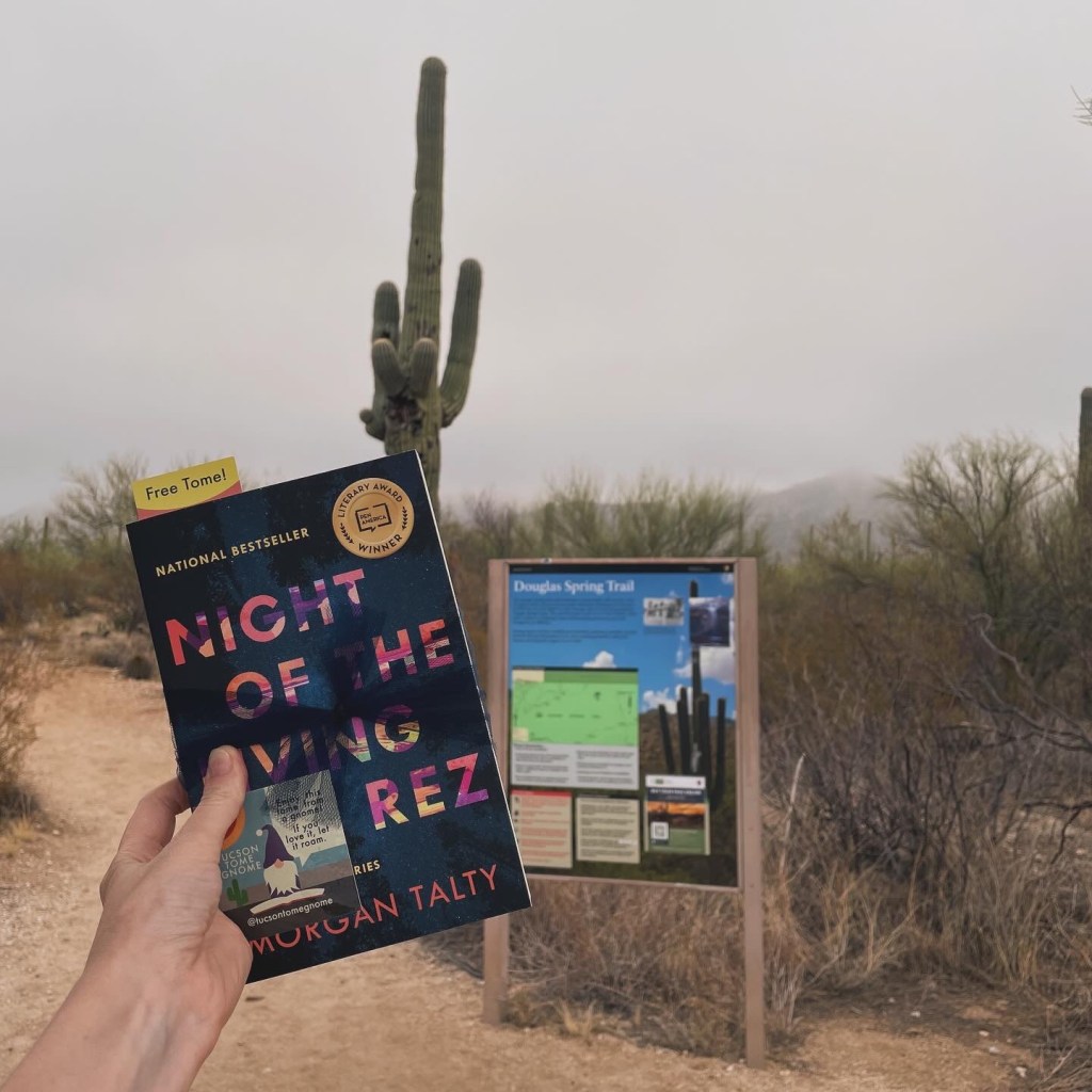During this twenty-seventh book giveaway, I had a wonderful day hiding 30 copies of Night of the Living Rez by Morgan Talty all over Tucson! This month’s book was selected for Native American Heritage month. I like to focus my reading this month on not only reflecting on the injustices committed against indigenous communities, but I also want to learn and pay tribute to the ancestry and traditions of these communities, which have so often been ignored in mainstream media.