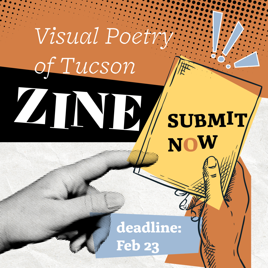 Have you ever written a poem using images instead of text? Are you an artist who creates visual art using text? Do you have a love and appreciation for Tucson and the Sonoran Desert? We heartily invite you to submit your work for a “Visual Poetry of Tucson” Zine!