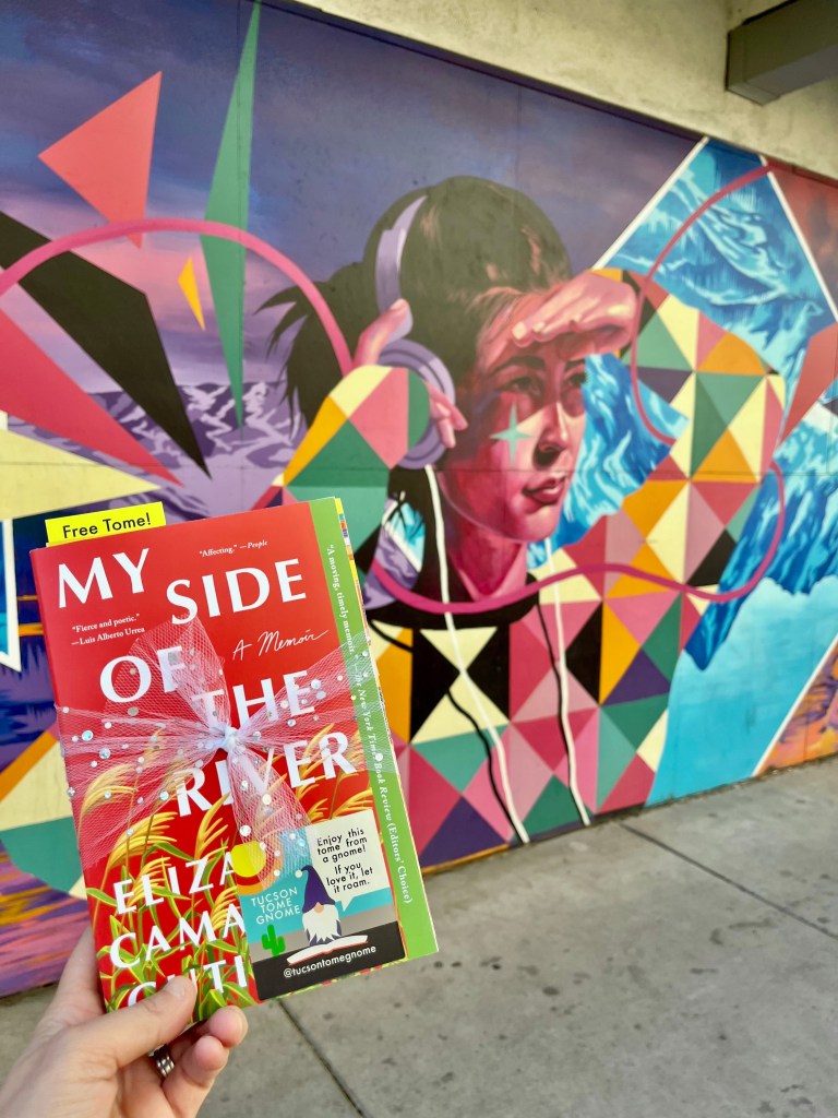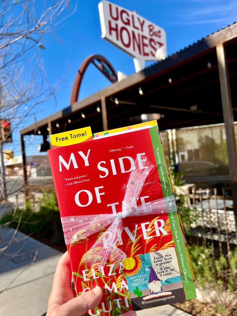 If you’re new here and didn’t get a chance to find a book last Sunday, some of our amazing guest gnomes will be hiding an additional 15 books of this month’s selection (on top of the 30) around Tucson over the next week or two. So keep your eyes peeled, as 15 more copies of My Side of the River will be hidden around town! We do not post any hint photos of these books, as they are truly meant to be a random act of kindness for those who happen upon them. Yay for random bookish joy and delight!