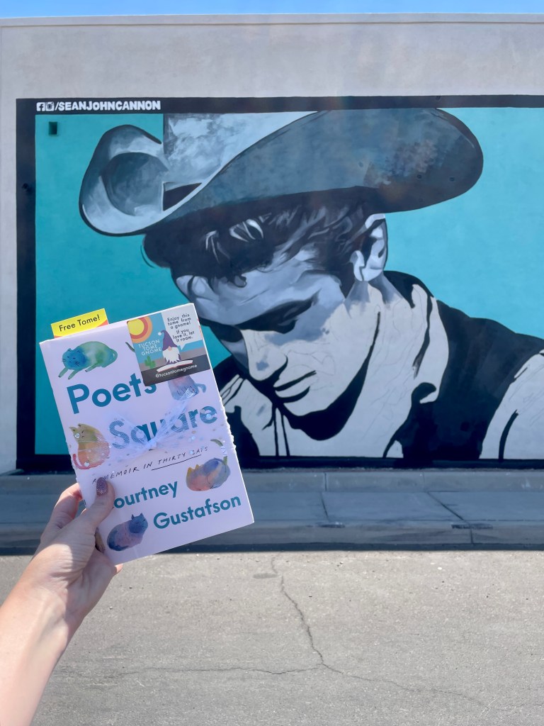 Happy 45th book giveaway! I wanted to celebrate May with an alliterative book-hiding adventure (memoirs at murals in May), and I hid 30 copies of Poets Square by Courtney Gustafson. This gnome loved this book SO MUCH. You can read more about why we selected this book here.