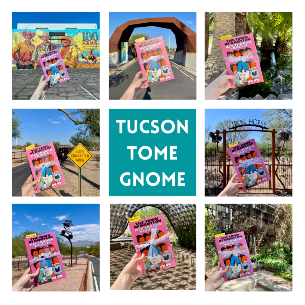 If you’re new here and didn’t get a chance to find a book on book-hiding day, some of our amazing guest gnomes are hiding an additional 15 books (on top of the 30) around Tucson over the next few weeks. So keep your eyes peeled, as 15 more copies of The Town of Babylon are being hidden around town! We do not post any hint photos of these books, as they are truly meant to be a random act of kindness for those who happen upon them. Yay for random bookish joy and delight!